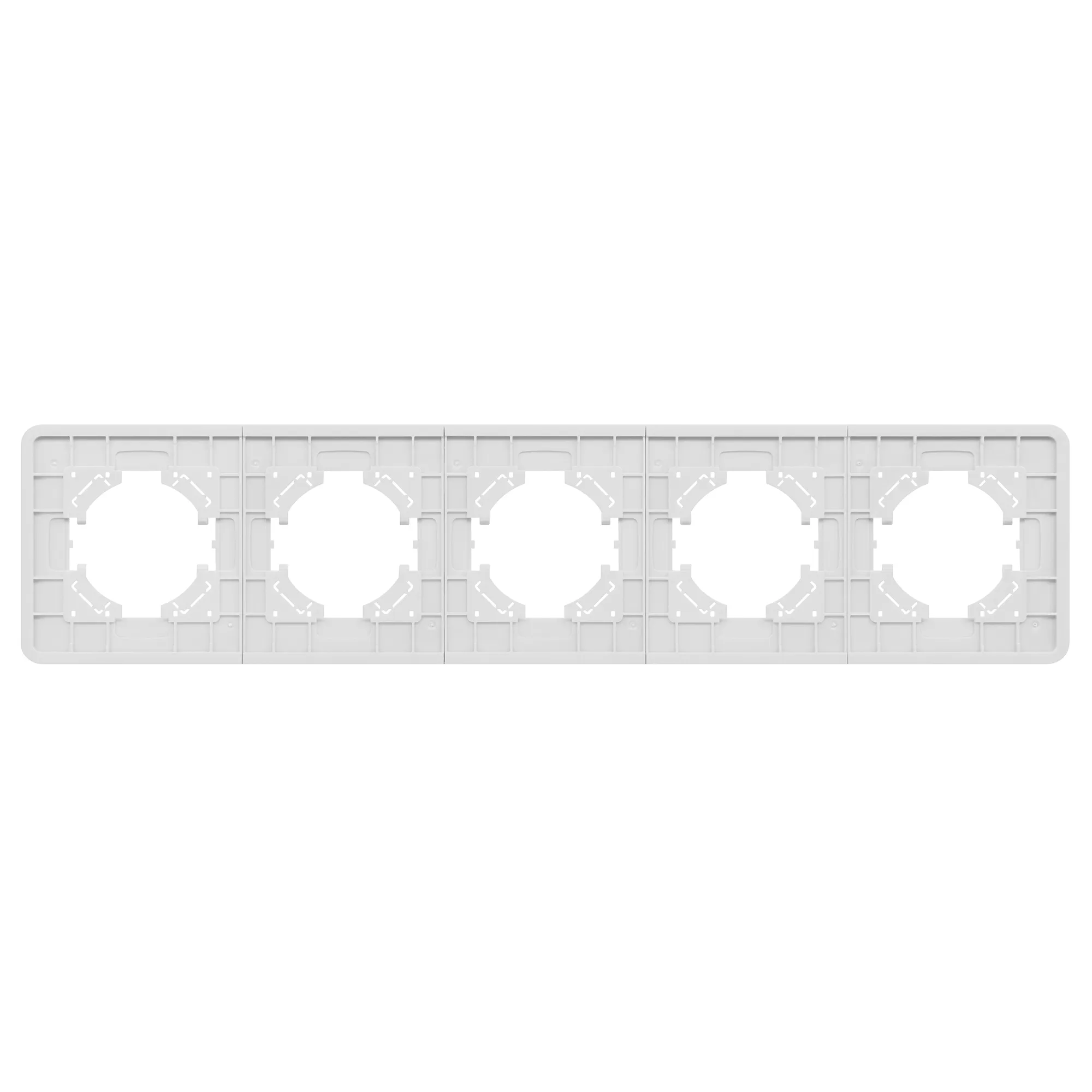 Рамка стеклянная на 5 постов, под встраиваемый механизм. Цвет - белый с Soft-Touch покрытием. Уровень герметичности IP20. Ориентация монтажа - горизонтальная (основным ориентиром служат посадочные выступы для накладки механизма).