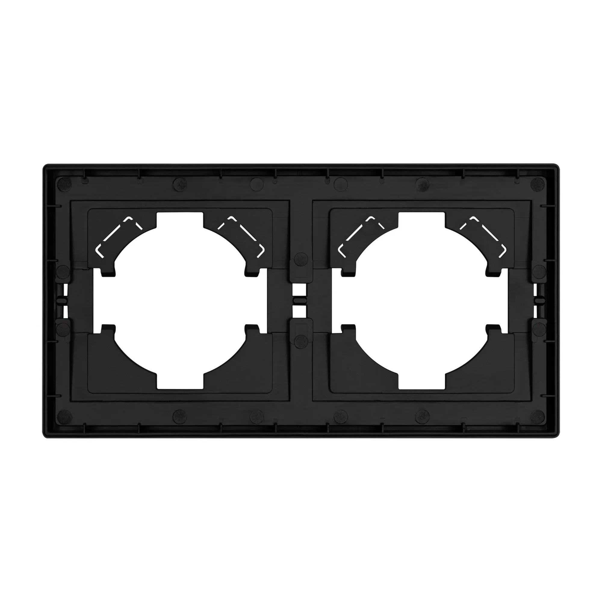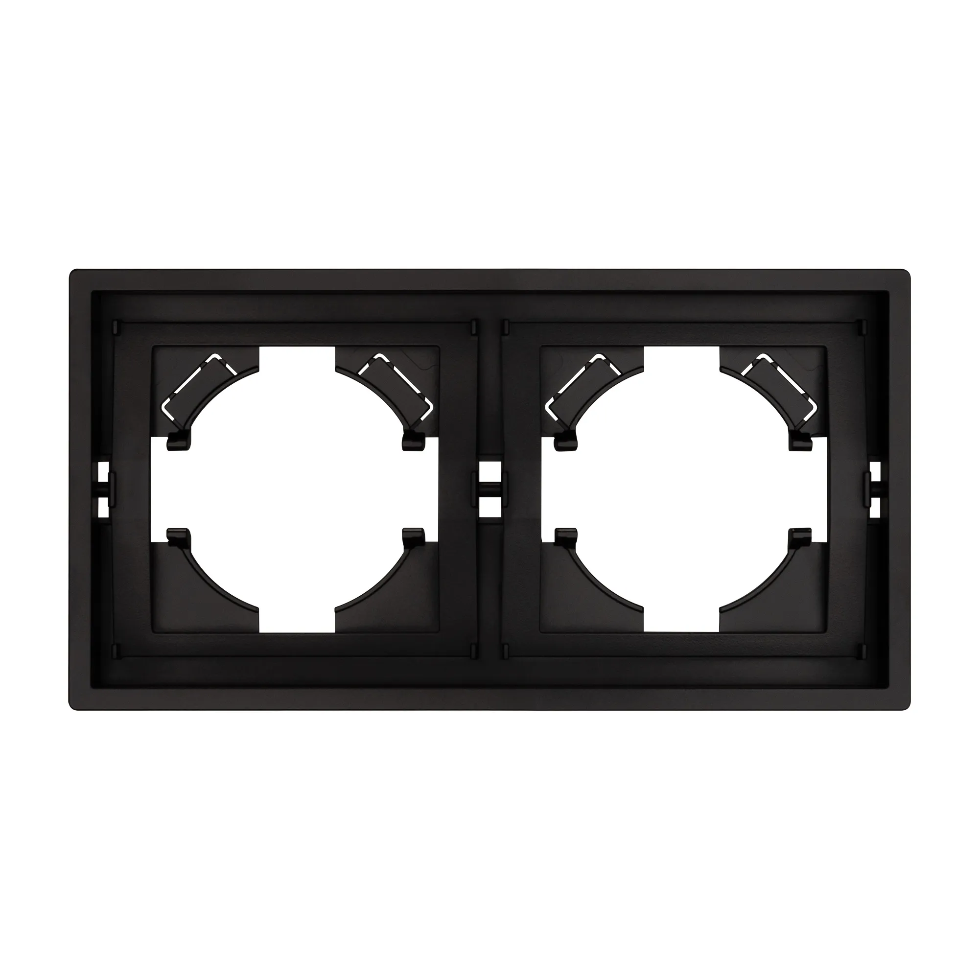 Рамка пластиковая на 2 поста, под встраиваемый механизм. Цвет - черный. Уровень герметичности IP20. Ориентация монтажа горизонтальная. Габаритные размеры: длина 150 мм, ширина 80 мм, высота 9 мм. Гарантийный срок 12 мес.